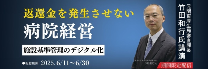 無料オンラインセミナー/返還金を発生させない病院経営~施設基準管理のデジタル化~を開催します〔主催:iMedy(株)〕