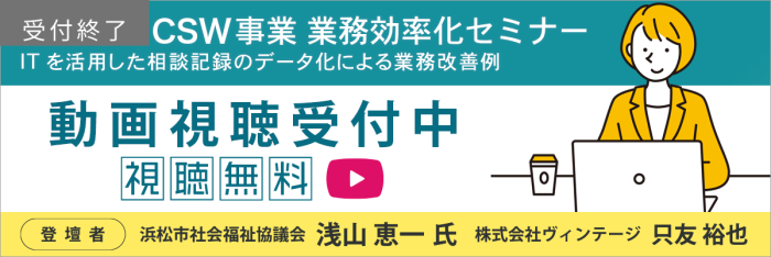 【受付終了】【動画配信】社協向け CSW事業 業務効率化セミナー~ITを活用した相談記録のデータ化による業務改善例~